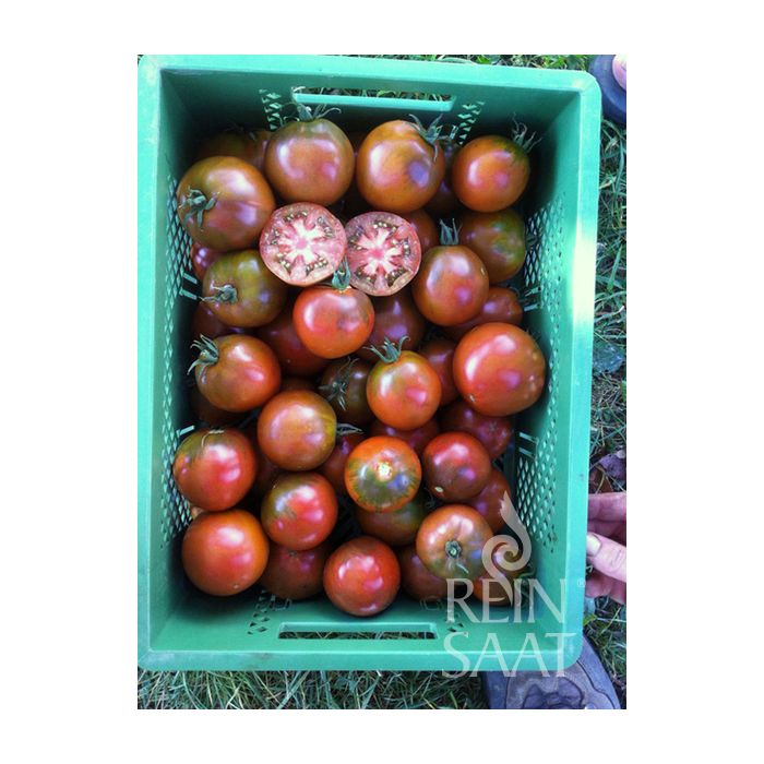 De planten groeien krachtig en produceren veel licht peervormige tomaten met een donker roodbruine kleur. Het vruchtvlees is sappig, zacht zoet en weinig zuur, ideaal voor verse bereidingen.