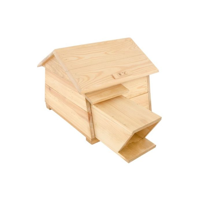 Het huis is fraai vormgegeven, vervaardigd uit zeer degelijk vurenhout en afgewerkt met een blanke lak op waterbasis.