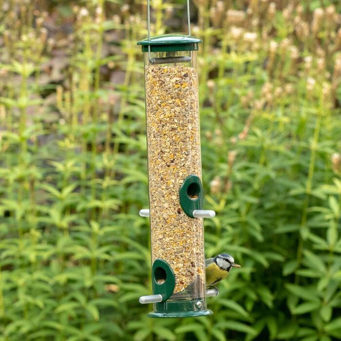 <p>Deze metalen voedersilo van Natuurpunt is door de poedercoating weersbestendig en duurzaam. De doorzichtige koker is van UV-gestabiliseerd polycarbonaat en behoudt eveneens de kwaliteit onder alle weersomstandigheden. Ideale voedersilo om grotere hoeveelheden tegelijk te voeren, waardoor bijvullen minder vaak nodig is. Voorzien van vier voederopeningen.</p>