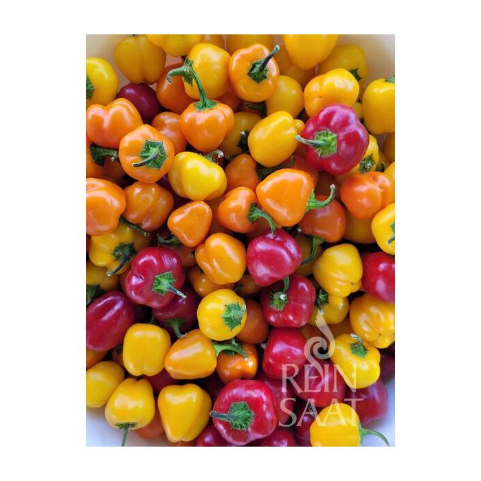 Het middelvroeg rijpende mengsel van rode, oranje en gele minipaprikasoorten levert hoge opbrengsten aan kleine, geblokte, relatief dikwandige vruchten met een uitgesproken zoete, aromatische smaak. De ca. 1 m hoge, bossige planten groeien robuust, stabiel en zijn gemakkelijk te kweken. Ook potcultuur is mogelijk.