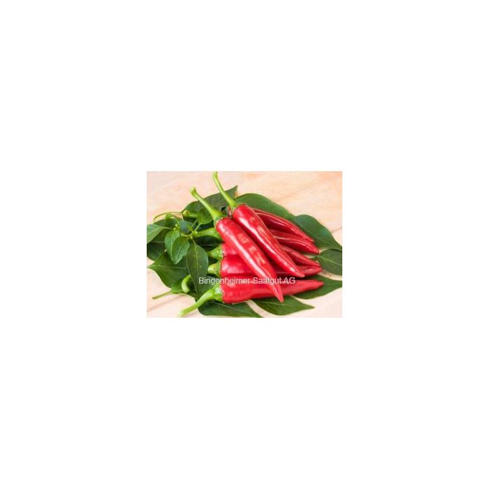 Scherpe Chili-peper met 10-12 cm lange, slanke groene vruchten. Rood afrijpend. Relatief hooggroeiend, goed opbrengstpotentieel. Scherptegraad: 6.