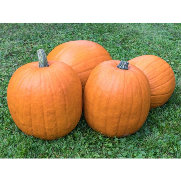 Typische Halloween pompoen. De plant is licht rankend. De oud-goudkleurige vruchten worden tot 3 kg zwaar en zijn ca. 4 maanden houdbaar.