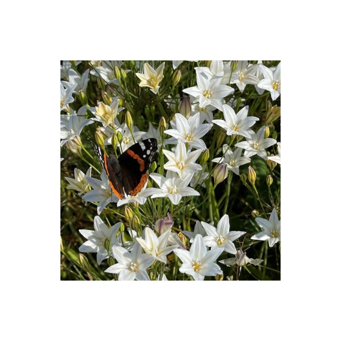 Triteleia laxa 'Silver Queen' is een bolgewas met zuiverwitte bloemen met een subtiel groen randje. Prachtig in borders, potten of als snijbloem.