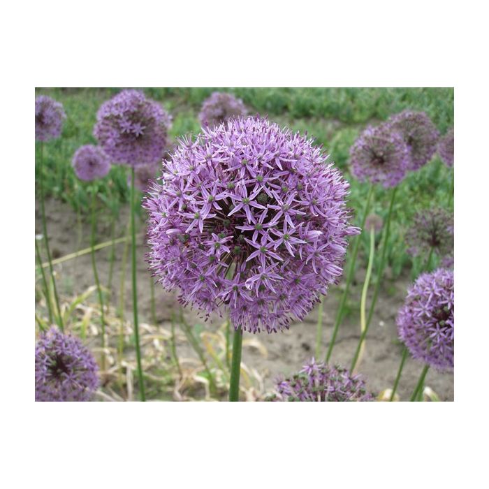 De Allium ‘Gladiator’ is een indrukwekkende sierui die tot 130 cm hoog kan worden. De stevige stelen dragen grote, compacte bloemhoofdjes van 12–15 cm doorsnee, waardoor de plant prachtig overeind blijft staan en geschikt is als verse of droge snijbloem. De bloemkleur varieert tussen zacht-paars, lila en paars-roze, en voegt een speelse en elegante touch toe aan de tuin.
