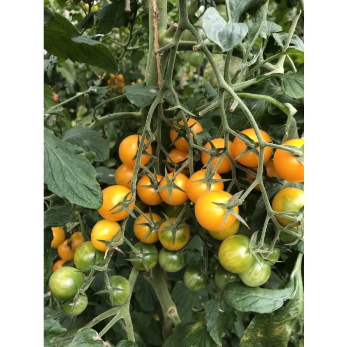 Redelijk vroege, gele kerstomaat. Geeft brede trossen met heerlijk zoete tomaatjes.Vrij sterk resistent tegen barsten. In sommige jaren heeft de plant meer neiging om scheuten (dieven) te vormen op het blad. Licht ovale vruchten.
