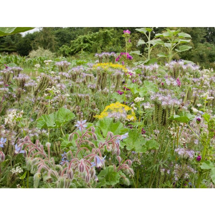 Eenjarig, laaggeprijsd bloemenrandenmengsel met insectenvoederplanten speciaal voor de professionele tuinbouw ontwikkeld, in het bijzonder geschikt voor veldranden. Mooie blikvanger. Bestanddelen: boekweit, phacelia, zonnebloem, bernagie, lupine, alex. klaver, Perzische klaver, zomerwikke, serradella, hartgespan, dille, kaasjeskruid. Veranderingen in samenstelling voorbehouden. Mengsel zonder kruisbloemigen. Snelgroeiende rassen zorgen voor een goede onkruidonderdrukking. Zaaidiepte: 3 cm.