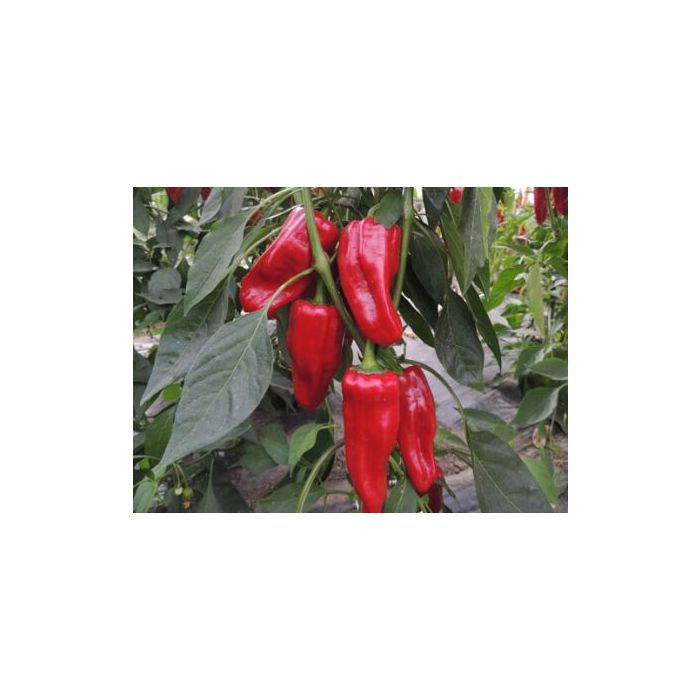 Pikante rode afgestompte puntpaprika. 7-8 cm. Voor vers gebruik en om te drogen.