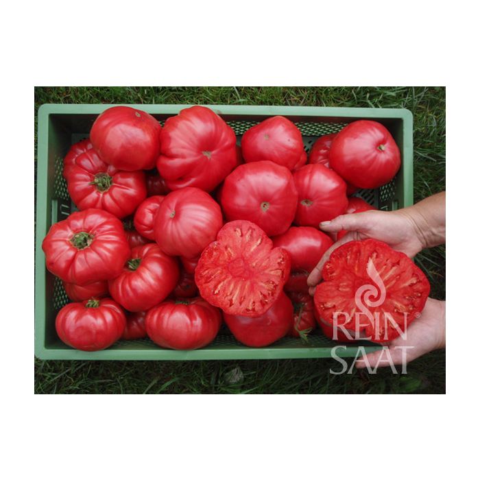 Zeer grote, ronde tot platronde vleestomaat met een uitstekende smaak en stevig, sappig vruchtvlees. De volumineuze vruchten zijn uitzonderlijk barstbestendig ondanks hun fijne schil. Zeer geschikt voor hobbytuinen en korte ketenverkoop. Vruchtgewicht tot 900 g.