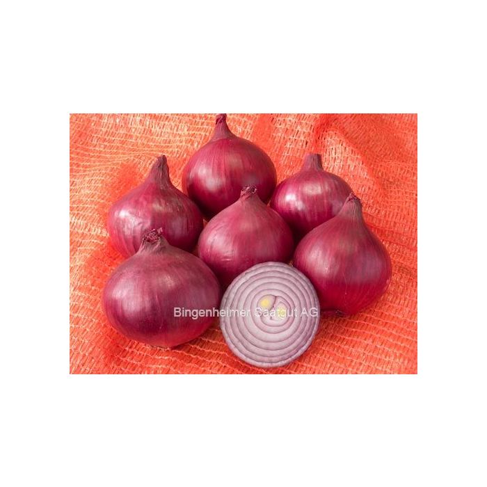 Middelvroege donkerrode, goed doorkleurde ui, rond tot vlakrond. Zeer productief, gezond en voor middellange bewaring geschikt.