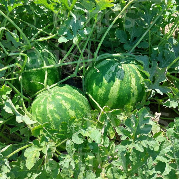 Gestreepte, rond-ovale watermeloen met lichtrood, knapperig-zoet, verfrissend vruchtvlees. Zeer geschikt voor de vollegrondsteelt. Vruchtgewicht 5 tot 10 kg.